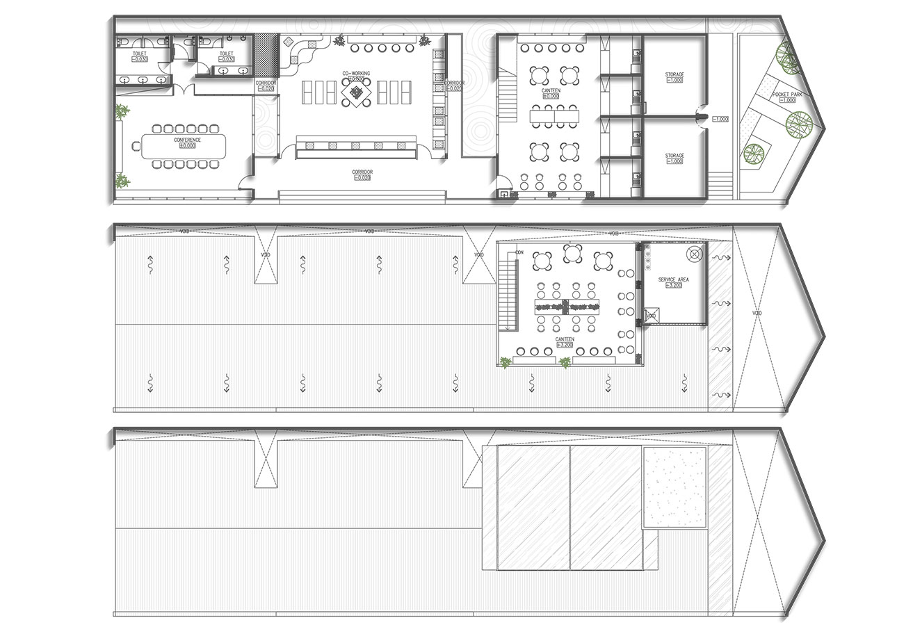 Bangunan yang mengakomodasi fungsi coworking, conference, dan kantin yang dibangun dengan memanfaatkan struktur yang sudah ada. Berlokasi di Warung Jati Barat, Jakarta Selatan. Bangunan bersifat semi permanen sehingga material yang digunakan adalah material yang mudah dibongkar pasang. Bertema industrialis dengan sentuhan kayu serta bukaan yang banyak untuk menghemat penggunaan cahaya buatan saat siang hari.