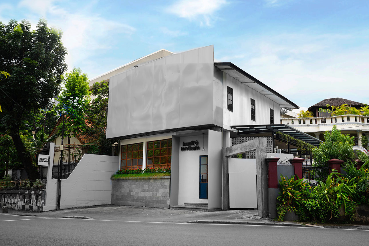 Cafe dengan kesan asri yang dibangun beradaptasi dengan bangunan eksisting
