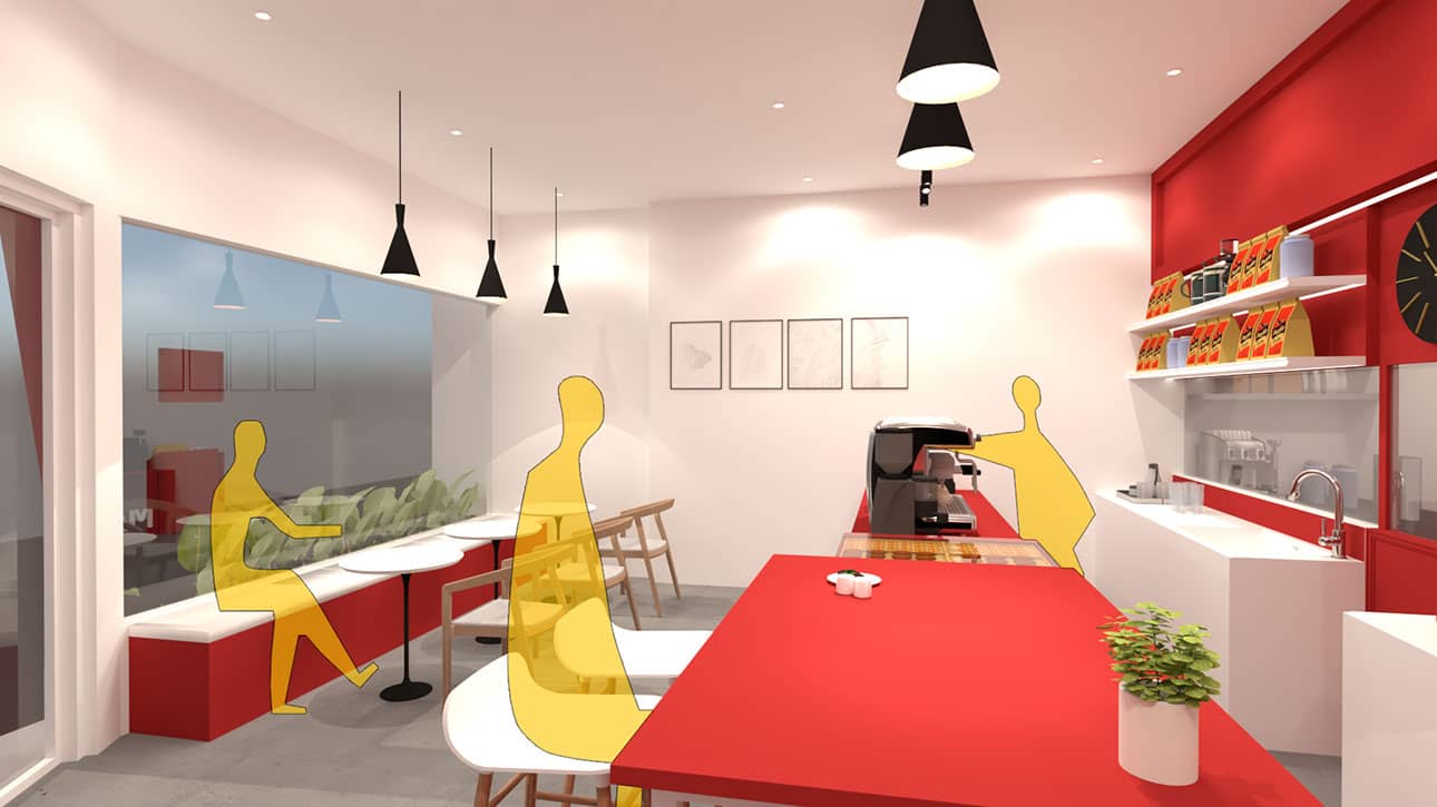 Desain sebuah kantor dan kafé yang berada di Menteng Jakarta Pusat.